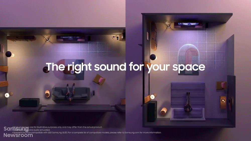 ¼ÒºñÀÚÀÇ ½Ãû °ø°£ ºÐ¼®¿¡µµ AI ±â¼úÀÌ È°¿ëµÈ´Ù. ¡®½ºÆäÀ̽ºÇÍ »ç¿îµå(SpaceFit Sound, °ø°£ ¸ÂÃã »ç¿îµå)¡¯ ±â´ÉÀº TV ³»Àå ¸¶ÀÌÅ©¸¦ ÅëÇØ TV Àç»ý À½ÁúÀÇ ¹Ý»çÀ½(reflection)À» ÃøÁ¤ÇØ TV¿Í º®°úÀÇ °Å¸®, °ø°£ÀÇ ÈíÀ½ Ư¼º µîÀ» ºÐ¼®ÇÑ´Ù. À̸¦ Åä´ë·Î Á֯ļö ´ë¿ªº° ºÎÁ·ÇÑ ºÎºÐÀ» ¾Ë¸Â°Ô º¸»óÇÏ´Â °úÁ¤À» ÅëÇØ ¿øÀÛÀÚÀÇ Àǵµ°¡ ¹Ý¿µµÈ »ç¿îµå°¡ Ãâ·ÂµÇµµ·Ï µ½´Â´Ù.